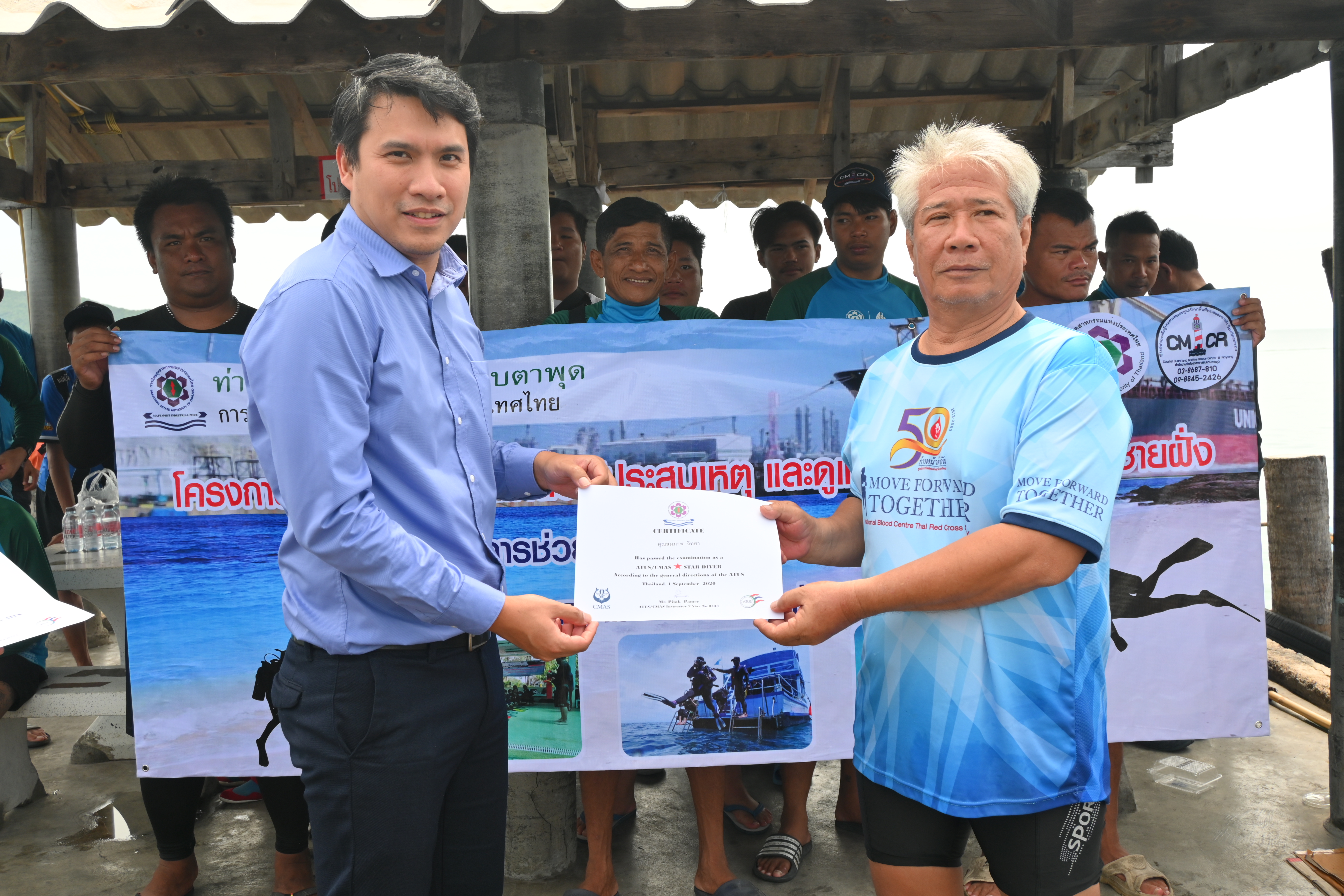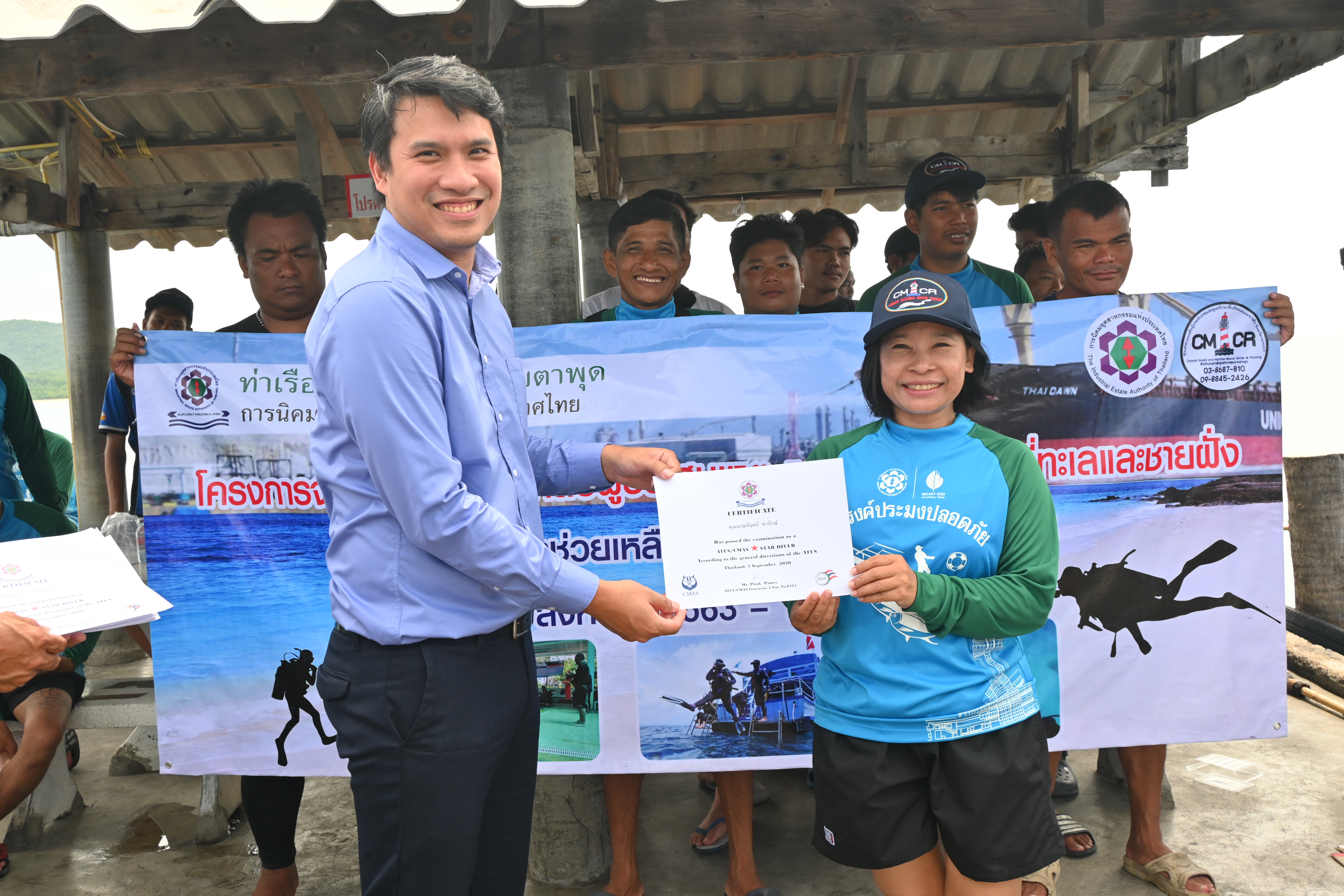 การนิคมอุตสาหกรรมแห่งประเทศไทย (กนอ.) โดยสำนักงานท่าเรืออุตสาหกรรมมาบตาพุด (สทร.) ได้มีการจัดตั้งโครงการศูนย์ช่วยเหลือผู้ประสบเหตุและดูแลรักษาพื้นที่ทะเลและชายฝั่ง จังหวัดระยอง ซึ่งได้ดำเนินโครงการมาตั้งแต่ปี 2558 มีวัตถุประสงค์เพื่อประสานให้ความช่วยเหลือชาวประมง นักตกปลา นักท่องเที่ยว หรือผู้ที่ประสบเหตุอื่นๆ ที่เกิดขึ้นทางทะเลและสร้างองค์ความรู้ พัฒนาศักยภาพของกลุ่มประมงและกู้ภัย ให้มีความสามารถช่วยเหลือตนเอง และเป็นก้าวเล็กๆสู่การนำไปช่วยเหลือผู้อื่น ต่อไป และในปี 2563 ได้กำหนดให้มีการจัดกิจกรรมเพิ่มทักษะที่เกี่ยวกับการดำน้ำ สทร. กลุ่มประมง และกู้ภัยอาสา จึงร่วมกันจัดกิจกรรมพื่อพัฒนาทักษะ และความรู้ หลักสูตร Open water One star รุ่นที่ 4 เพื่อเพิ่มทักษะความรู้ตลอดจนเพิ่มจำนวนบุคลากรสมาชิกเครือข่าย ศูนย์ช่วยเหลือผู้ประสบเหตุและดูแลรักษาพื้นที่ทะเลและชายฝั่ง จังหวัดระยอง ในระหว่างวันที่ 28 สิงหาคม ถึง 1 กันยายน 2563 ณ แสมสาร